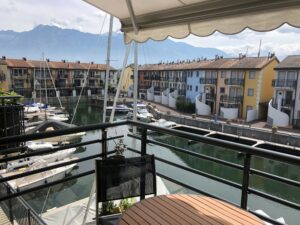 Sie liegt im 2. Stock, Vasco de Gama 11/2 direkt am Wasser. Links und rechts sehen Sie auf die Hafenanlage mit vielen Segelbooten und einigen Motorbooten. Über die Dächer hinweg bietet sich eine schöne Sicht in die Waadtländer-Alpen und Walliser-Alpen.