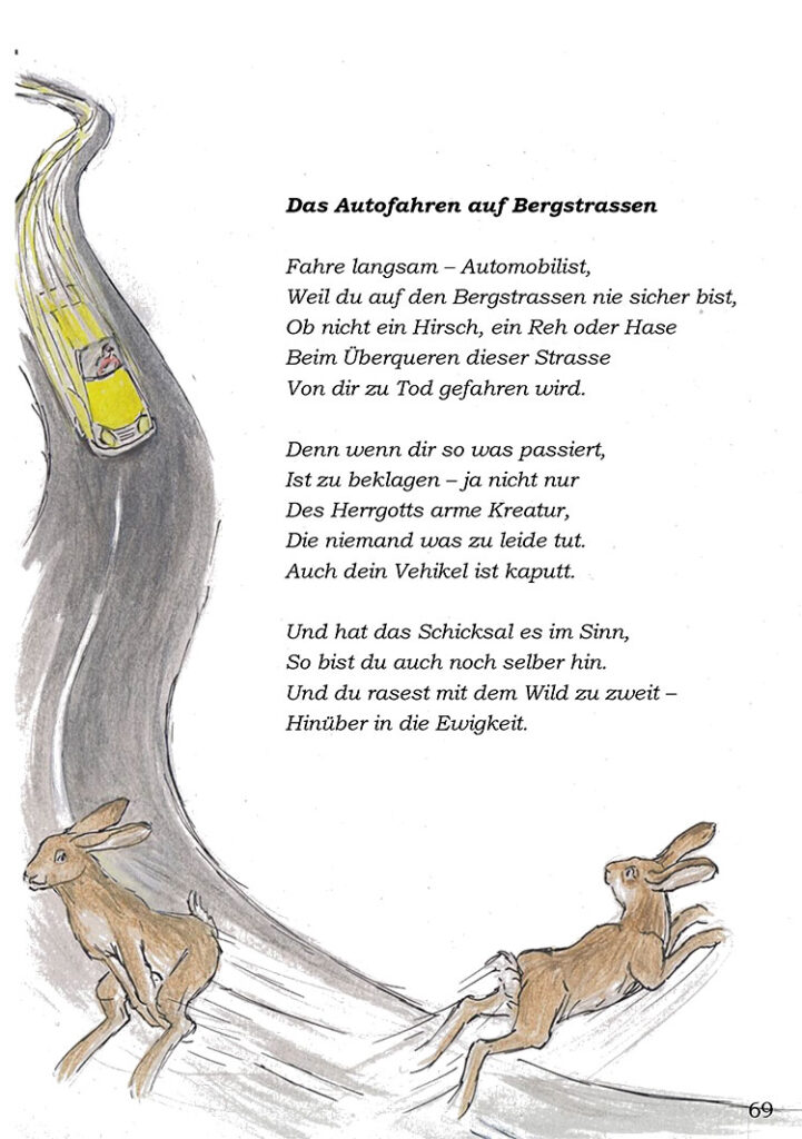 Ein lesens- und sehenswertes Büchlein. Die von Felix Kamil geschriebenen Gedichte und Anekdoten über ihn sammelte René Diezig. Andrea Messerli zeichnete und malte dazu in ihrem Atelier mit Tusch und Aquarell Illustrationen, die uns die Gedichte und Anekdoten in treffenden und lebendigen Bildern veranschaulichen. Unter dem Titel «Poet unter Ziegen» schrieb zudem Pedro Lenz ein einfühlsames Vorwort. Und am Schluss des Büchleins ist der bis jetzt unveröffentlichte Originaltext von Hannes Taugwalder abgedruckt, den er nach einem Besuch bei Felix Kamil schrieb.